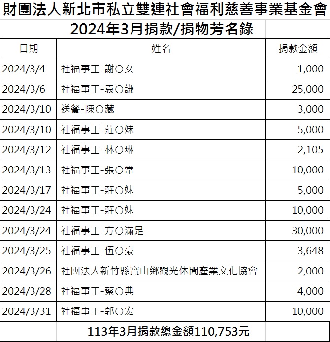 113年3月份捐款徵信芳名錄