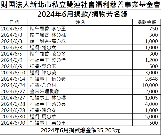 113年6月份捐款徵信芳名錄