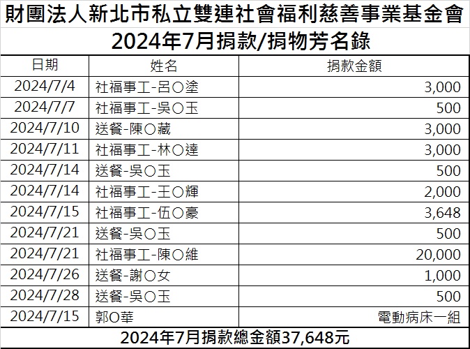 113年7月份捐款徵信芳名錄