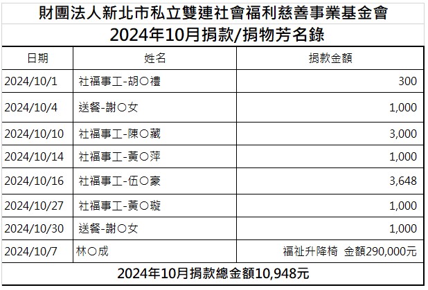 113年10月份捐款徵信芳名錄