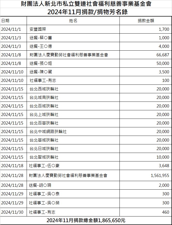 113年11月份捐款徵信芳名錄